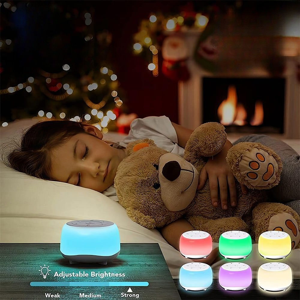 Drift off with ocean waves, rainfall, lullabies, and more while soft night-light colours set the perfect mood. Adjustable brightness and soothing soundscapes create comfort for babies, kids, and adults ideal for sleep, relaxation, or focus.